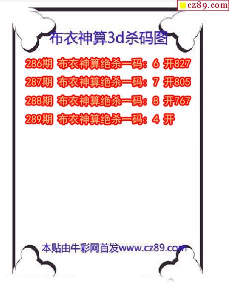 布衣神算杀码2025289期3d图谜(原创)