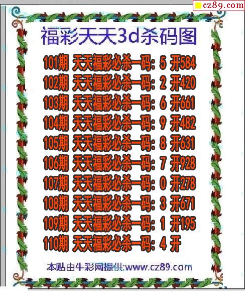 福彩天天杀码2026110期3d图谜(原创)
