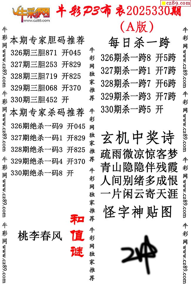牛彩P3布衣25年330期AB版图谜(精华版)